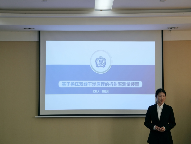 本次大赛面向物理学院全体在校学生,按照比赛规则,分别由高教主赛道和“青年红色筑梦之旅赛道”两大赛道同学上台展示。比赛现场,各团队依序登场,依据ppt讲解自己的计划与构思。在社会公益与教育帮扶、农业与环保科技、物理测量与仪器研发、社区基础建设等领域,同学们巧思设计,精取角度,着力创新。其中,基于杨氏双缝干涉原理的折射率测量装置这一创新项目的同学们在物理学科专业知识基础上,从实际实用角度对物理实验的基础测量仪器进行了更优化的创新。选手围绕项目创新点、实施路径、预期成果等内容,展开了精彩纷呈的介绍。参赛选手敏捷的思维和清晰的条理赢得了评委老师的赞扬,同时评委老师多角度考虑从可行性与前瞻性等为各项目提供优化的建议。