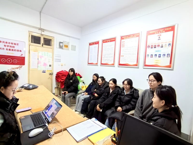为深入学习宣传贯彻党的二十届四中全会精神,推动全会精神在学生工作与社区建设中落地见效,11月17日上午,法学院于东十一“一站式”学生社区开展党的二十届四中全会精神学习会。院党委副书记田月红、全体专兼职辅导员、“自管会”成员参加会议。