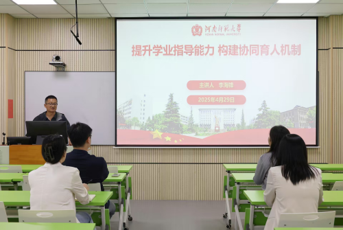 为全面提高学工队伍学业辅导能力素养,4月29日下午,数学与统计学院于107教室开展学工队伍学业指导能力提升专题培训会。院党委副书记王岩、副院长高福根出席,全体系主任、班主任和专兼职辅导员参加。会议由院教学秘书李海锋教授主讲。