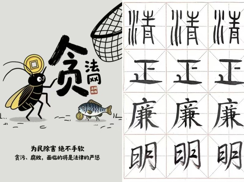 本次活动以“翰墨绘清廉”为核心主题,面向全院学生征集书法、绘画、剪纸、海报等多元艺术形式作品,鼓励学子结合校园生活场景、历史廉政典故、社会廉洁实践等元素进行创作。活动特别强调“以小见大、以美育人”的创作导向,既可通过笔墨丹青展现个人修身律己的品格追求,亦可借助视觉符号传递崇德尚廉的社会风尚。活动期间,同学们线上提交作品,内容涵盖诗词书法、廉政漫画、剪纸工艺、数字海报等,形式新颖、内涵丰富,充分彰显了青年学子对廉洁文化的深度思考与创新表达。