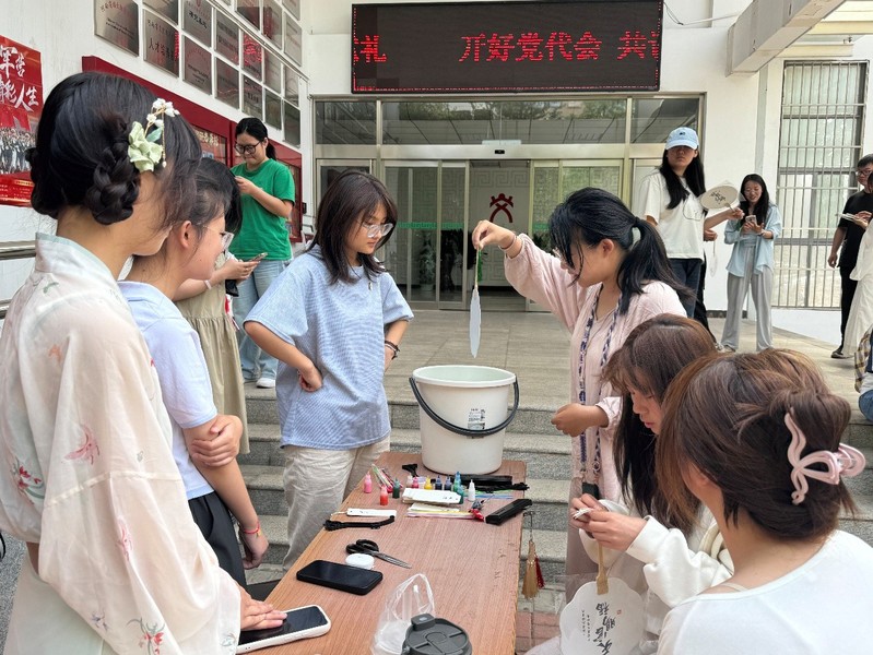 为推动非物质文化遗产保护传承,深化廉洁文化宣传教育,5月18日上午,文学院华夏未央汉服社于崇文楼506教室及报告厅前开展“漆一把廉洁扇”主题漆扇活动,吸引了众多学生踊跃参与。