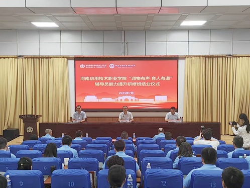7月28日上午,河南应用技术职业学院“润物有声·育人有道”辅导员能力提升研修班结业仪式在我校举行。河南应用技术职业学院党委委员、副校长黄振中,我校党委学工部副部长赵焕兴出席仪式。河南应用技术职业学院党委学工部、团委负责人及工作人员,各学院党总支书记、副书记、辅导员,我校党委学工部相关工作人员参加。结业仪式由河南应用技术职业学院党委学工部部长李海涛主持。
