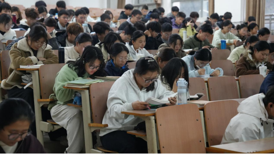 教室内,晨读学子构成一幅“专注白”的静谧画卷。2025级网络空间安全专业张琼正专注地复习专业知识,她表示:“清晨是记忆的黄金期,预习难点能让课堂学习事半功倍。”同学们或背诵单词,或梳理知识点,翻书声与鸟鸣相映成趣,营造出浓厚的学习氛围。
