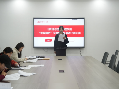 为纪念中国人民抗日战争暨世界反法西斯战争胜利80周年,深入学习贯彻党的二十大及二十届系列全会精神,促进学院学生进一步凝聚“爱国家、强军队、固国防”意识。10月12日,计算机与信息工程学院在学院办公楼103会议室举办“爱我国防”主题演讲比赛,2025级专职辅导员与学生代表共同参与。