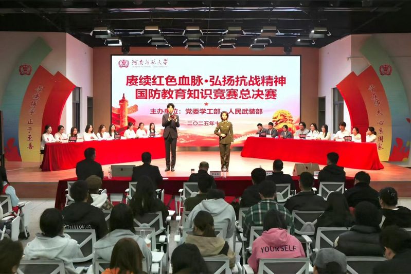 本次国防教育知识竞赛旨在深入学习贯彻习近平总书记关于加强全民国防教育的重要指示精神,隆重纪念中国人民抗日战争暨世界反法西斯战争胜利80周年,引导广大同学增强国防观念、传承伟大抗战精神,积极营造关心国防、热爱国防、建设国防、保卫国防的浓厚校园氛围。活动自启动以来,累计举办院(部)初赛,校级复赛及半决赛共31场,覆盖学生2000余人次。全校25个院(部)代表队经过层层选拔和激烈角逐,最终6支队伍脱颖而出,晋级决赛。竞赛聚焦党的二十大精神、伟大抗战精神和国防知识等内容,设置必答题、抢答题和风险题等环节。决赛中,六个学院代表队选手们全神贯注、沉着应答,展现出丰富的国防知识积累与良好精神风貌,现场气氛紧张热烈,精彩场面层出不穷。最终,地理与旅游学院获得一等奖,文学院与法学院获得二等奖,材料科学与工程学院、外国语学院、马克思主义学院获得三等奖。