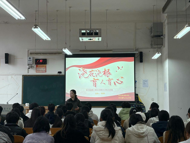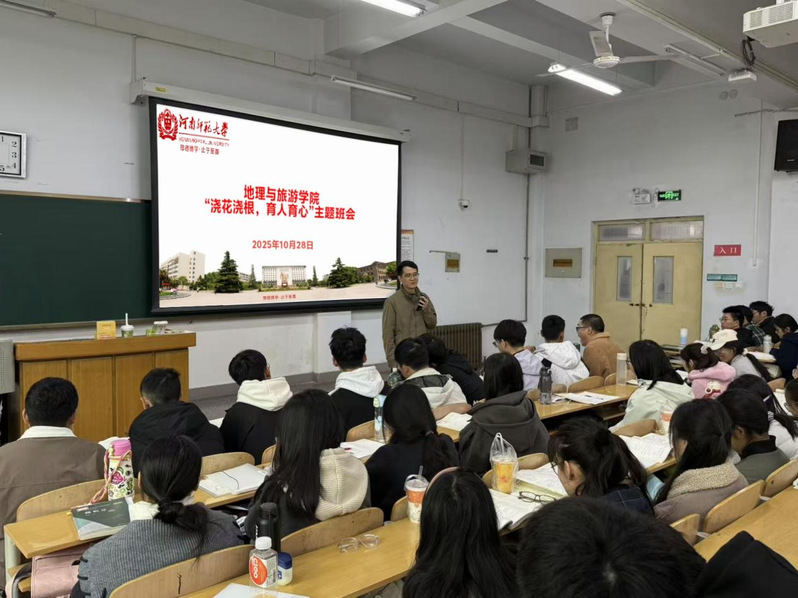 本次主题班会形式多样,内容丰富。各年级通过主题演讲、案例分享及互动讨论等多个环节将爱党爱国、思想引领、学业规划、心理健康、职业发展等核心内容融入其中。2025级专职辅导员张志明鼓励同学们敞开心扉,畅谈学业上的困惑、生活中的烦恼以及对未来的憧憬,并给予大家耐心的解答和积极的引导。2023级专职辅导员黄昭组织同学们进行互动讨论,他建议大家结合自身发展与个人兴趣特长,认真描绘个人大学成长路线图,把专业学习与社会需求紧密结合,将来在地理科学、旅游管理、文化传播等领域主动担当。“这次班会让我感觉特别温暖,老师不是在讲大道理,而是真正在关心我们的内心想法和长远发展。”2025级的一位同学在会后分享道,“‘浇根’和‘育心’这个比喻非常贴切,让我明白了扎实学习和健康心理同样重要,对未来方向也更清晰了”。