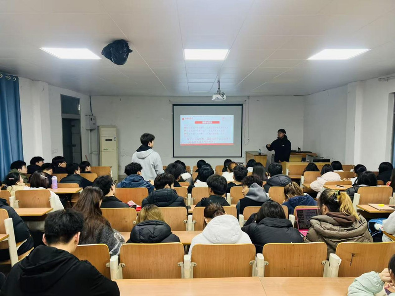 孟照军围绕大学生创新创业训练计划、中国国际大学生创新大赛、“挑战杯”全国大学生课外学术科技作品和中国大学生创业计划竞赛等创新创业项目进行介绍。他详细介绍了大赛的意义、流程与备赛要点,指出参与竞赛不仅是提升综合能力、检验学习成果的良好平台,更是提前进行职业探索、明确未来方向的重要契机。他鼓励同学们积极参与,以赛促学,在实践中明晰个人职业发展路径。