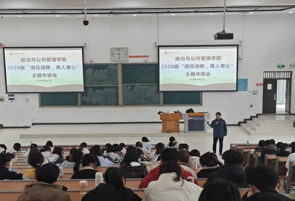为深入贯彻落实“浇花浇根,育人育心”的育人理念,坚持不懈用新时代中国特色社会主义思想铸魂育人,引导学生树立坚定理想信念,永远听党话、跟党走,矢志奉献国家和人民,根据党委学工部相关工作要求,10月底,政治与公共管理学院各年级精准施策,分层召开“浇花浇根,育人育心”主题班会、年级会,将思想政治教育融入学生成长全过程。