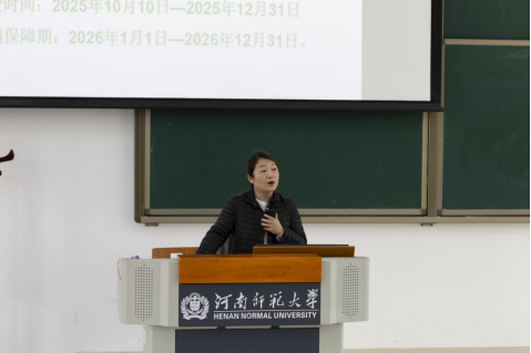 讲座现场,赵丹丹聚焦师生就医实际需求,详细解读了河南师范大学校医院的就诊流程、诊疗服务范围以及大学生参加新乡市城乡居民医疗保险政策。从医保报销比例、报销流程到就医注意事项,赵丹丹逐一讲解,现场解答学生关于日常就医、医保报销的疑问,为大家打通校园医疗保障的“认知盲区”。