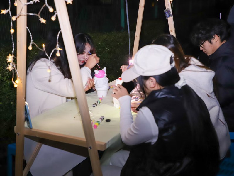 活动现场,各位摊主精心布置摊位,书籍、文具、生活用品、电子产品等闲置物品陈列整齐。活动过程中,摊主们热情细致地介绍物品,同学们认真理性地置换,让闲置物品重获新生。其中,DIY手工摊的涂石膏娃娃、制作弹力企鹅等趣味项目吸引了同学们驻足参与,大家在画笔勾勒与手工拼装中发挥创意,亲手打造独一无二的专属小物件。“寻章探宝,绿色同行”互动环节也在火热开展:九枚主题印章隐藏在各摊位之中供同学们收集,集满全部印章的同学就有机会参与套圈游戏,赢取惊喜奖品。同学们穿梭于各个摊位之间寻找、收集印章,挑选心仪好物的同时,也有机会因一个小物件、相同的兴趣认识一拍即合的新朋友。活动结束后,摊主们自觉清理摊位杂物,保持场地整洁,彰显了良好的校园风貌。