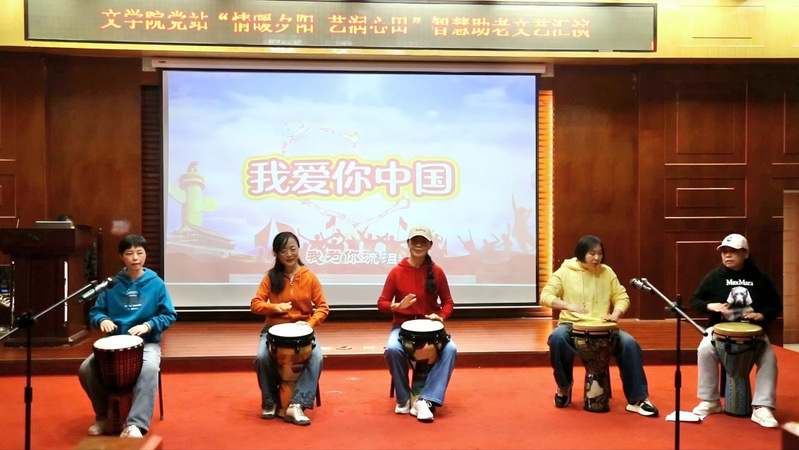 活动伊始,大家共同观看了往期“智慧助老”活动的精彩短片。随后,优秀志愿者代表杨怀恩结合自身助老服务经历,分享了与老教师们相处的温暖故事,并号召同学们以实际行动传承敬老美德。文艺汇演环节在退休教师激情澎湃的非洲鼓《我爱你中国》中正式开启,铿锵的节奏点燃了全场的热烈气氛。退休教师合唱团合唱《这世界那么多人》,以悠扬的歌声传递出岁月沉淀的感动。教师们的精彩表演,充分彰显了其艺术功底与精神面貌。志愿者们也献上了形式多样的节目,如排舞《时代感》、昆曲《牡丹亭·游园》选段等,共同将现场氛围推向高潮,洋溢着敬老爱老的融融温情。退休职工李老师表示:“节目非常精彩,志愿者们的用心演绎让我们重温了青春的活力。”