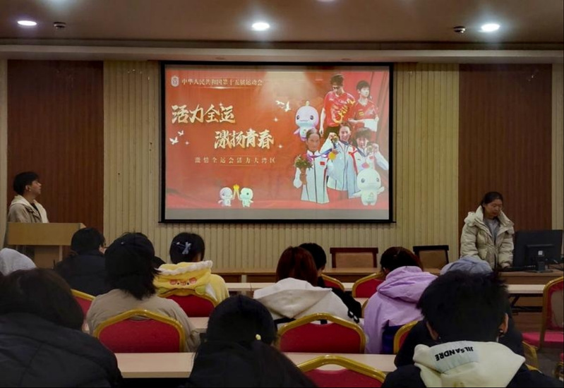活动伊始,协会负责人郭幸佳结合详实的文字资料、生动的赛事影像,系统梳理全运会的发展历程,深入解读全运会承载的时代价值与家国情怀。通过讲述赛场上运动员顽强拼搏、永不言弃的动人故事,深刻剖析中华体育精神的核心内涵,引导同学们直观感受体育赛事的独特魅力。分享过程中,同学们凝神聆听、认真记录,在沉浸式学习中深化对全运会的认知,也对体育精神的意义有深刻感悟。为进一步调动现场氛围,深化学习成效,活动特别设置互动环节。现场围绕全运会赛事知识、体育精神等内容开展问答互动,郭幸佳抛出相关问题后,同学们积极举手抢答,答题准确的同学获得定制纪念小礼品。在分享交流中,同学们结合自身运动经历,畅谈对体育精神的理解,分享自己坚持运动的感悟,表示将以运动员为榜样,把拼搏进取的精神融入生活学习中。