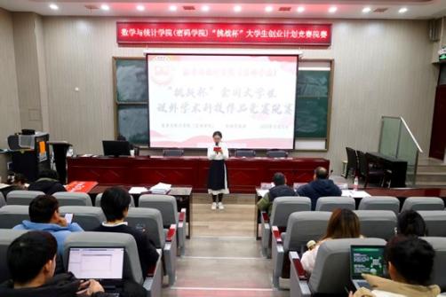 为激发学生创新热情,锤炼其创新思维和创业实践能力,12月13日晚,数学与统计学院(密码学院)于数学楼报告厅举办“挑战杯”全国大学生创业计划竞赛院赛。李钧涛教授、李超老师、大学生竞赛管理科科长郑燏涛应邀担任比赛评委。学院学生踊跃参加。