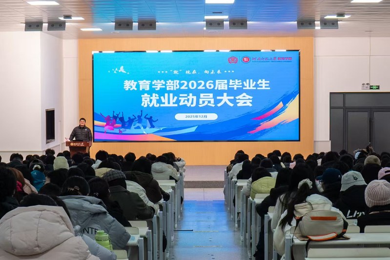 为帮助2026届毕业生精准把握最新就业政策,科学规划职业发展路径,扎实做好就业准备工作,教育学部于12月23日下午在万人餐厅三楼树蕙堂召开2026届毕业生就业动员大会。2026届毕业生专兼职辅导员及全体2026届毕业生参会,大会由毕业班专职辅导员尹晓炯主持。
