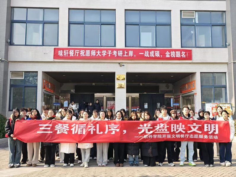 为弘扬勤俭节约的传统美德,倡导文明健康的就餐方式。12月1日至12月28日,软件学院在味轩餐厅开展“三餐循礼序,光盘映文明”主题实践活动。此次活动由青年志愿者协会文明校园办公室举办,累积超过500名同学参与。