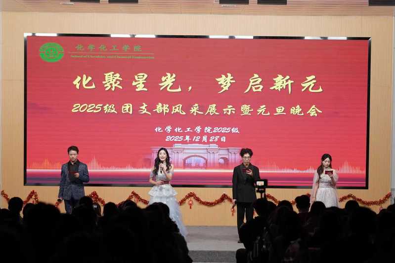 岁序更替,华章日新。为展示团支部风采、共度元旦佳节,12月28日晚,化学化工学院2025级本科生在树蕙堂成功举办了“化聚星光,梦启新元”团支部风采展示暨元旦晚会。2025级专兼职辅导员及全体本科生共500余人齐聚一堂,在欢声笑语中共迎新年。