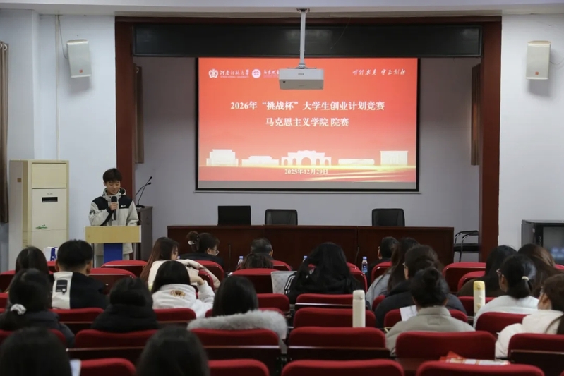 为培养学生创新意识,造就具备创业潜力的优秀人才,为校赛选拔输送优质项目,12月29日上午,马克思主义学院于平原楼108会议室成功举办2026年“挑战杯”大学生课外学术科技作品竞赛院赛。校招生就业处创业实训科科长王科、生命科学学院团委副书记马静潇、学院辅导员薄一凡、郭豪栋、韩怡萍老师受邀担任评委。