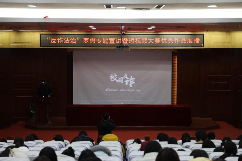 为持续深化“校园无诈·法治护航”专项活动成效,提升学生假期安全防范意识,护航平安返乡与居家生活,1月8日下午,“平安寒假始于心 反诈防骗践于行”寒假专题宣讲暨反诈短视频大赛优秀作品展播活动在东校区模拟法庭成功举办。活动吸引了来自各学院的两百余名学生代表积极参与。