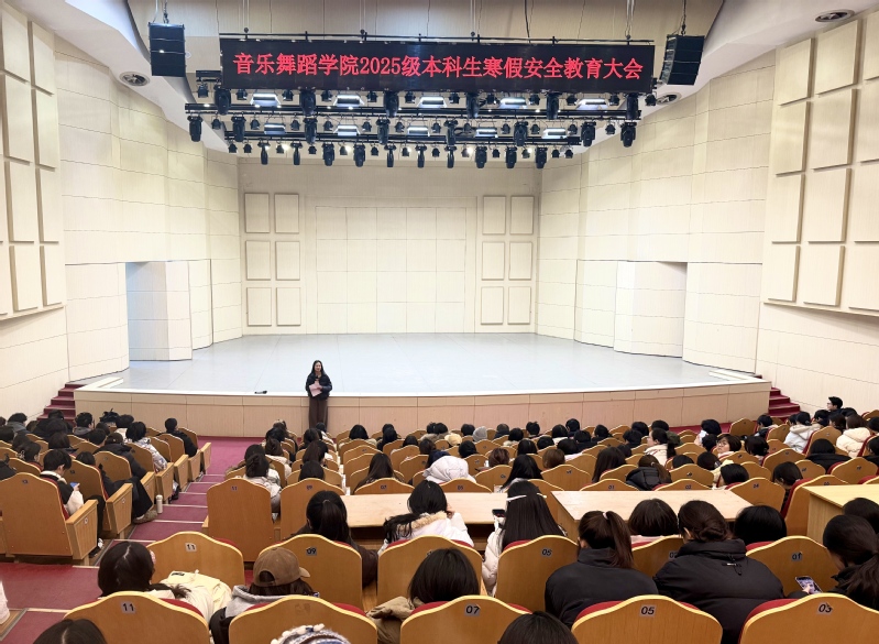 为扎实做好学生安全教育工作,确保寒假期间校园安全稳定与学生平安健康,1月22日下午,音乐舞蹈学院在帕瓦罗蒂音乐厅组织召开2025级本科生寒假安全教育大会。会议由2025级辅导员朱怡林主持,兼职辅导员和全体学生参加。