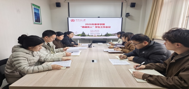 为深入贯彻落实立德树人根本任务,统筹推进新学期学生工作高质量开展,进一步凝聚育人合力、提升育人实效,3月5日,光电工程学院在物理北楼C210召开2026年春季学期“铸魂育人”学生工作会议。学院党委副书记宋军丽主持会议,全体辅导员参加会议。
