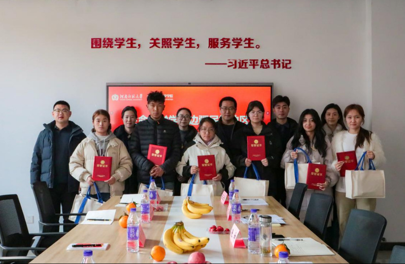 结合学院“美丽寒假”主题活动,谭笑宣读获奖名单。与会老师共同为获奖学生颁发证书,并向全体学生赠送学习大礼包。