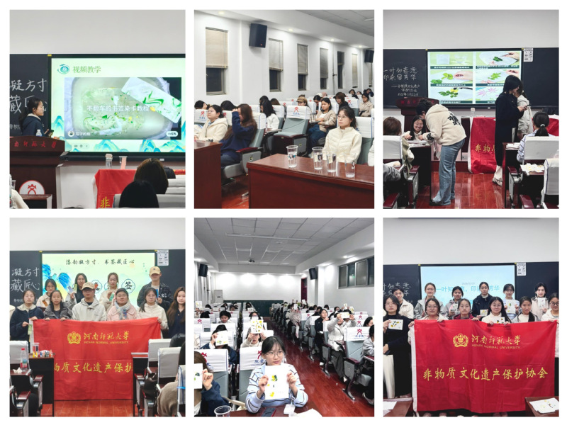 “一叶知春意,印染留芳华”植物印染活动接续开展。非物质文化遗产保护协会的成员们首先为参与的同学们讲解了印染的相关知识。随后,大家进行动手操作,自行为植物固色,再将花叶轻敲于宣纸,让自然汁液晕染出独特色样。活动内容轻松有趣而富有意义,学生们都积极动手,乐在其中,精心创作了一个又一个赏心悦目的印染作品。朵朵花草、片片枝叶在学生们的印染之下跃然纸上——那一个个独特的斑斓纹样,不仅是技艺的传承与展现,更让让学生们在自然与工艺的交融之中感受到了中华优秀传统文化的无限魅力。