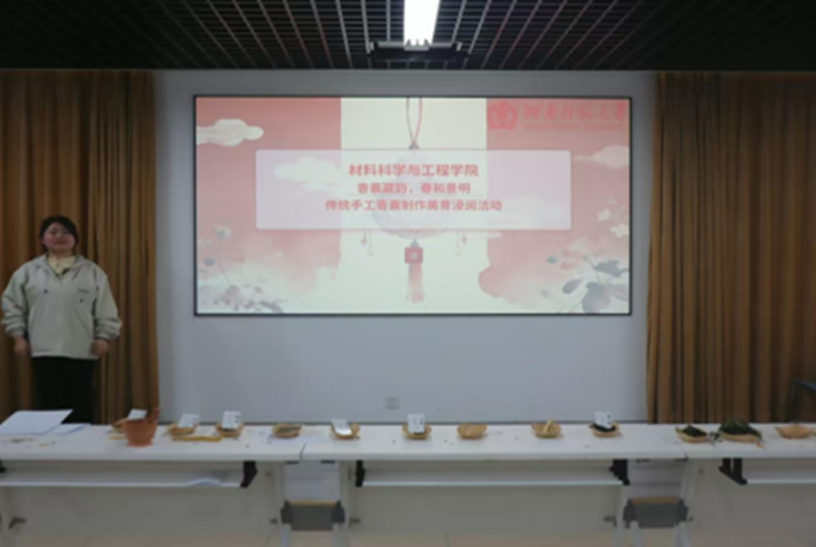 为传承中华优秀传统文化,丰富校园文化生活,3月28日,材料科学与工程学院在实训楼1113教室开展“春和景明 香囊藏韵”传统手工香囊制作美育浸润活动。本次活动以传统民俗、非遗技艺与中医药文化为载体,引导学生在动手实践中感受非遗魅力、提升审美素养,涵养文化自信与健康生活理念。