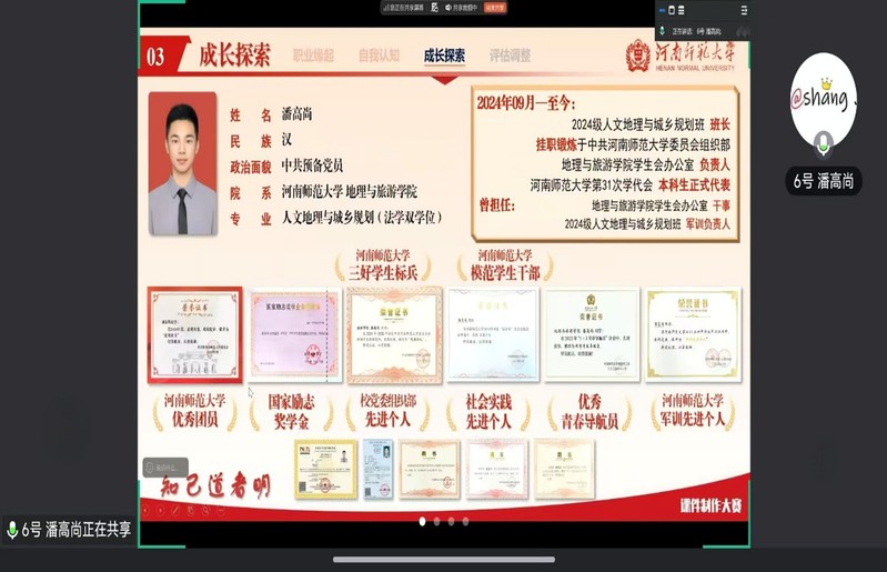 为扎实提升师范生教学技能与信息化教学应用能力,助力师范生成长为高素质地理教育工作者,4月4日下午,地理与旅游学院于腾讯会议举办第三十三届大学生基本技能大赛课件制作大赛院赛。