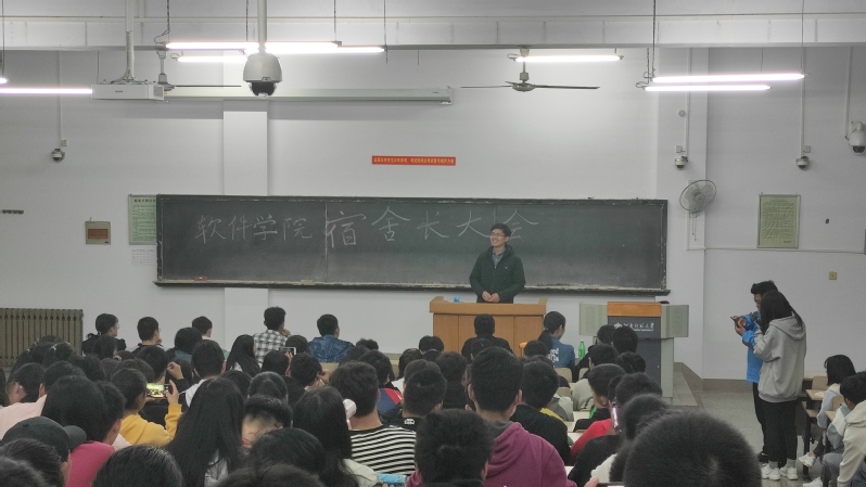为营造文明和谐、安全舒适的宿舍环境,进一步加强宿舍安全教育工作,10月10日下午,软件学院2020级在新五五四103教室召开“全体宿舍长会议”。会议由辅导员张清宇主持,班主任王贞化博士、近200名宿舍长以及全体学生骨干参加了此次会议。