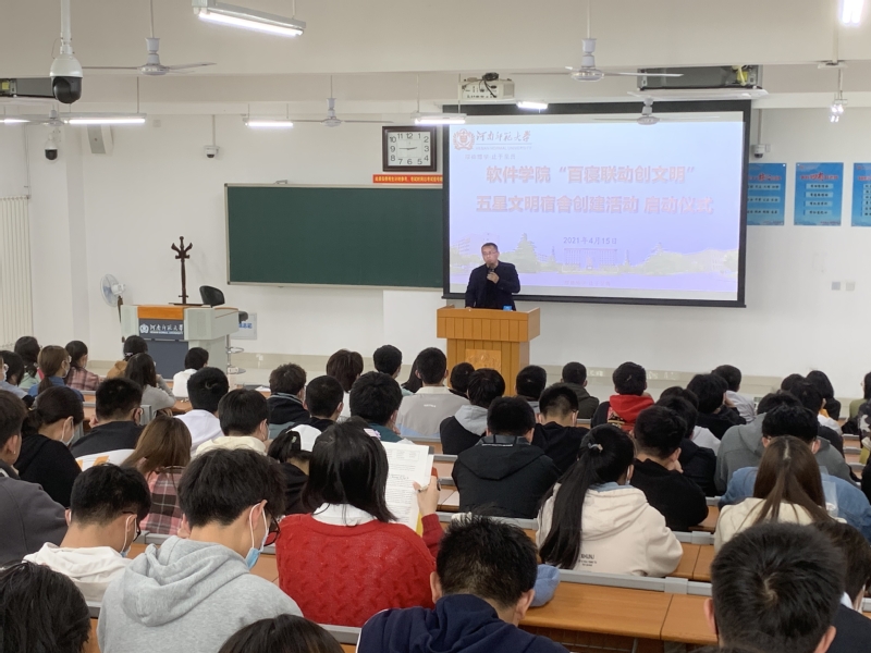 创建软件五星宿舍,彰显青春文明成果。4月15日,软件学院在文昌楼325教室举行“百寝联动创文明”五星文明宿舍创建活动启动仪式。学院相关负责人、宿舍长代表参加了仪式。