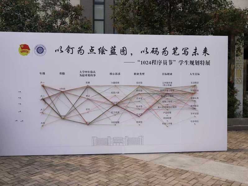 为帮助学生明确职业发展方向,增强学业与生涯规划意识,10月23日,软件学院学术创新部在平原湖校区餐厅东侧举办“以钉为点绘蓝图,以码为笔写未来”钉子画展板活动。累计300余名学生参加活动。