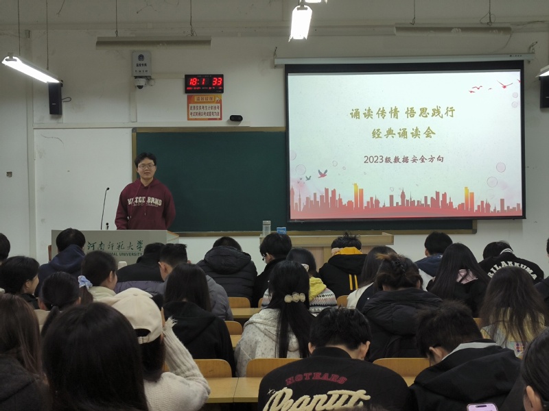 在“诵读传情,悟思践行”红色经典诵读中,肖静怡同学选取《习近平谈治国理政》中的精彩选段,声情并茂地传递思想力量;张思源同学诵读红色家书,字里行间重现革命先辈的家国担当;谭杰匀等同学吟诵中华经典诗词,用传统文化之美浸润人心。诵读结束后进行“感悟分享”,同学们结合诵读内容与成长经历进行感悟交流。