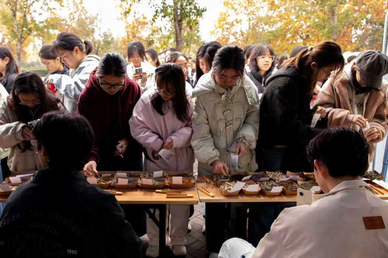 为传承中华优秀传统文化,丰富校园文化生活,营造温馨和谐的冬日氛围,11月8日上午,软件学院在平原湖校区味轩食堂东门前开展“新冬启序,香佩承安”香囊DIY活动,共计700余人参加。