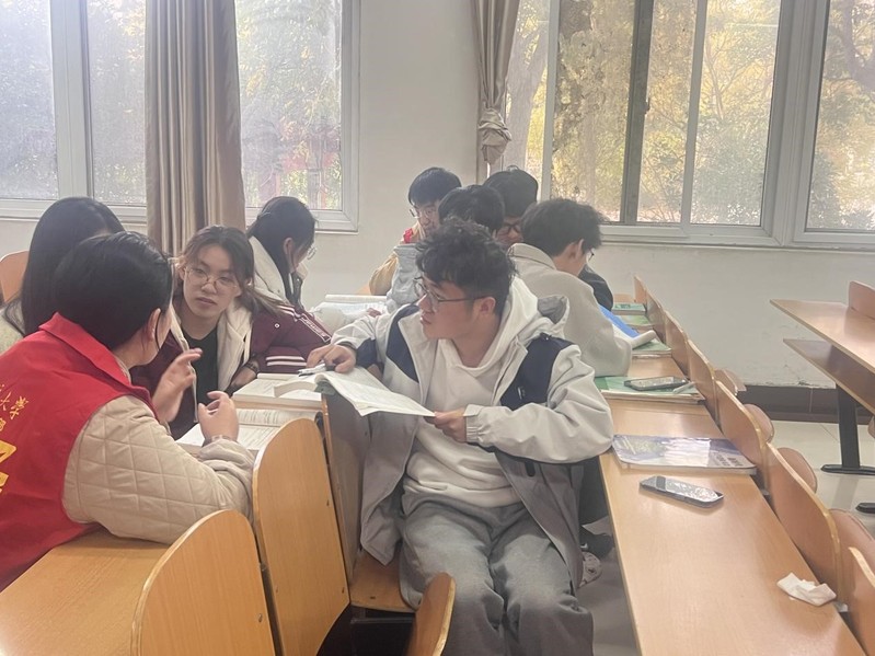 英语帮扶则线上线下联动,线上搭建词汇打卡群,营造共同学习氛围;线下定期举办“轻松英语角”,围绕校园生活等贴近新生的话题,引导大家大胆开口交流,在轻松互动中提升口语能力、缓解四级备考焦虑。