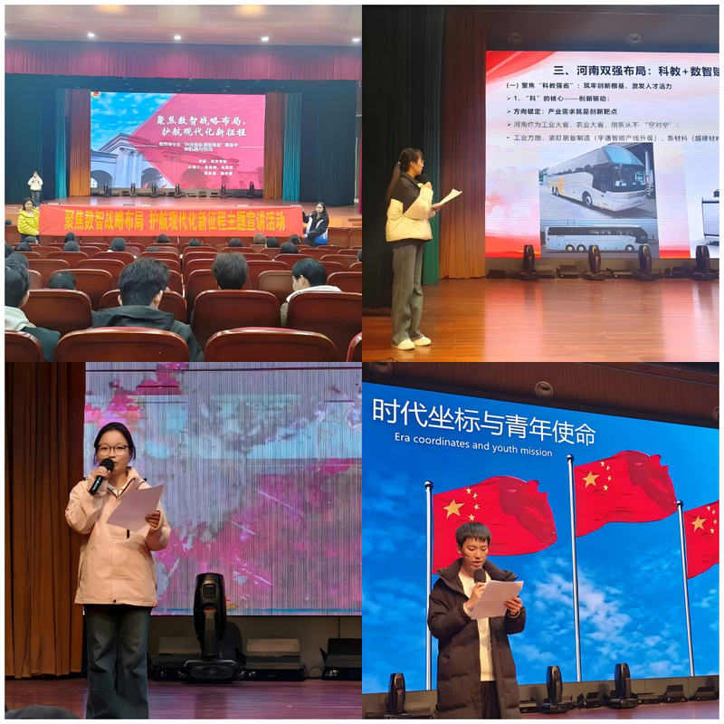 为深入贯彻国家“十五五”规划及河南省“六个强省”战略部署,12月11日,软件学院于平原湖校区一号报告厅开展“聚焦数智战略,护航发展征程”主题宣讲活动,本次活动由数字中原社团主办,面向软件学院全体同学展开解读。