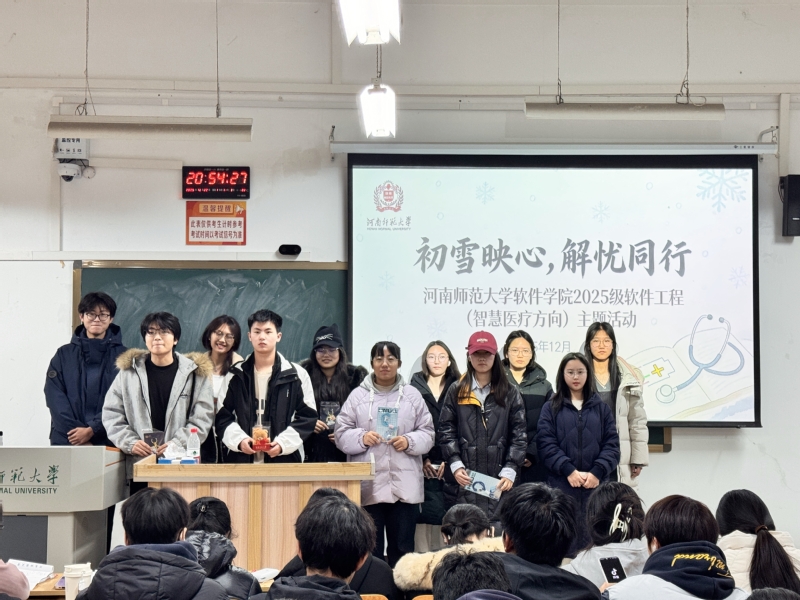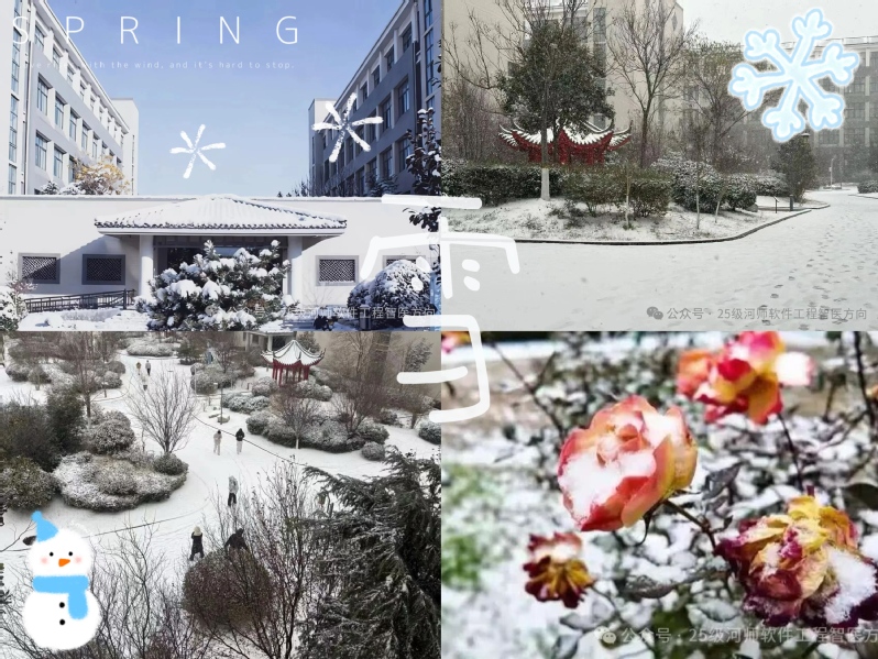 为丰富课余生活、缓解学习压力,提升学生实践能力与专业凝聚力。近日,软件学院软件2025级软件工程(智慧医疗方向)举办的“初雪映心、解忧同行”主题摄影活动圆满收官。活动一经发布,便在专业内掀起热潮,同学们热情高涨,纷纷化身“摄影达人”,投身这场与雪花的浪漫邂逅。