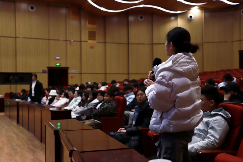 本次宣讲活动邀请了柴亿轩、李若蕾、程梦瑶、张业顺、王聪煜五位优秀学生代表分享实践经验。宣讲伊始,柴亿轩结合个人参与返家乡活动的经历,讲述实践对自身成长的促进作用,并提醒同学们通过官方正规平台报名活动,谨防诈骗。接着,李若蕾聚焦核心能力提升展开分享,表达了以青春之力服务社会发展的决心。然后,程梦瑶从志愿服务的社会价值与时代意义出发,鼓励大家在实践中锤炼品格,增长才干,张业顺则通过自己从理论到实践转变的真实经历,强调实践活动的重要价值。宣讲尾声,王聪煜指出参加实践活动可以在实际锻炼中增强个人解决问题的能力,并呼吁同学们积极参与实践活动,不负青春韶华。活动最后设置互动提问环节,面对同学们提出的相关疑问,学长学姐们逐一耐心的进行了解答。