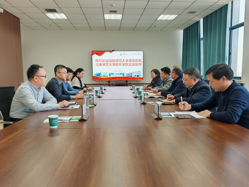 1月7日,信阳师范大学校长办公室副主任岳银、审计处副处长秦士荣、财务处副处长殷涛、教务处副处长韩艳婷、计算机与信息技术学院副院长刘道华一行莅临我院考察交流,围绕产教融合、校企合作、人才培养三大核心议题开展交流座谈。软件学院班子领导参与座谈。