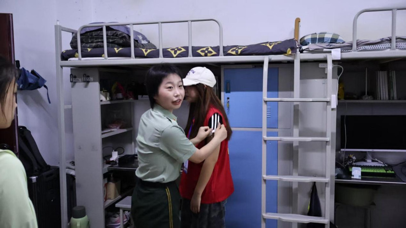 在交流环节,同学们纷纷提问日常收纳难题。张永丽和刘玉莹分别结合宿舍实情和部队经验,细致解答了厚衣物存放、桌面整理等痛点,分享了实用技巧和维持整洁的妙招。