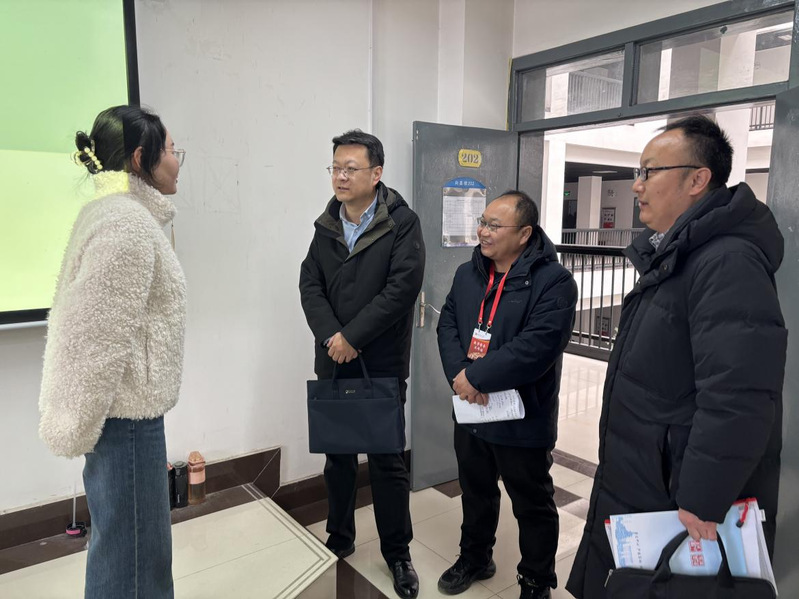 苗雨一行首先深入教学楼,听取了学院领导和平原湖校区综合管理办公室领导的简单汇报,并现场通过监控设备全面了解校区整体教学运行状态,重点关注师生到课率、课堂纪律、教师课件准备等方面情况。随后,苗雨带领检查组一行随上课铃声走进向真楼202教室进行了现场听课。课后,校领导与授课教师进行了深入交流,对教师课堂教学组织、课堂互动效果以及学生听课状态给予充分肯定。