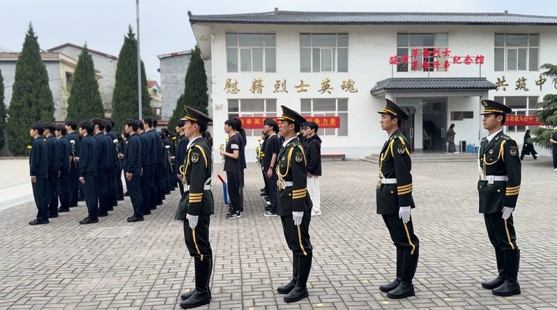 活动现场庄严肃穆。全体人员整齐列队,奏唱中华人民共和国国歌。随后,全场默哀三分钟,向烈士致以沉痛哀悼与崇高敬意。师生代表缓步上前,向烈士敬献花篮,整理缎带。王晓祥讲述肖思远烈士在加勒万河谷冲突中,为营救战友、捍卫国土壮烈牺牲的英雄事迹。全体学生三鞠躬致敬,表达追思之情。最后,大家有序瞻仰烈士墓园、擦拭墓碑,以朴素行动缅怀英烈。