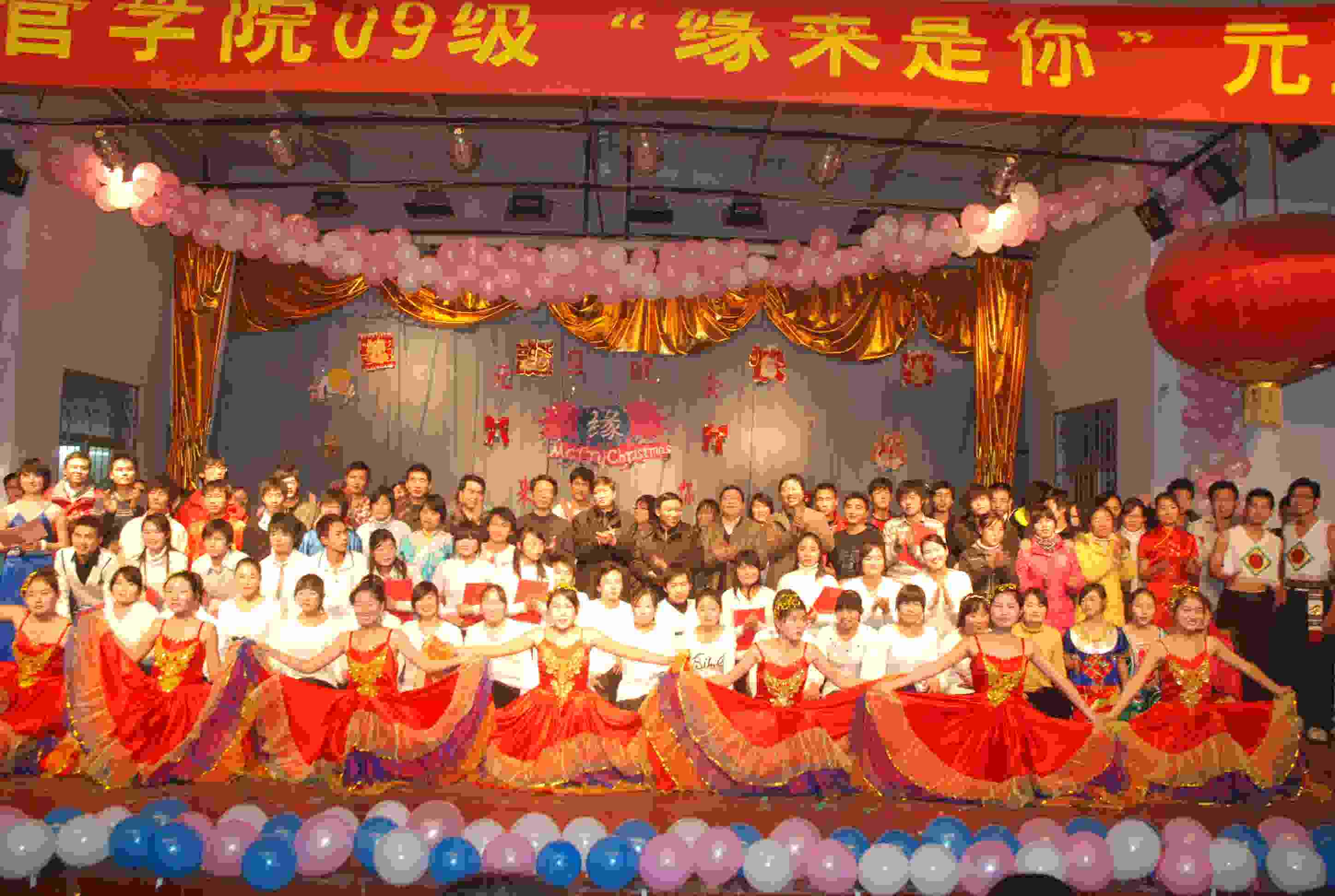 12月24日晚7:30,河南师范大学青年活动中心座无虚席,经济与管理学院在此隆重举行了主题为“缘来是你”的2009级2010年元旦晚会。出席此次晚会的嘉宾有院党委书记朱建、党委副书记李杰、国际贸易系主任丁祥生、团委书记兼08级辅导员王令耀、党委秘书兼06级辅导员宋树伟、07级辅导员刘新争、09级辅导员赵占恒。此外,音乐学院08级辅导员徐忠奎也应邀出席。2009级全体学生参加了晚会,此次晚会还得到院全体师生的支持和关注。