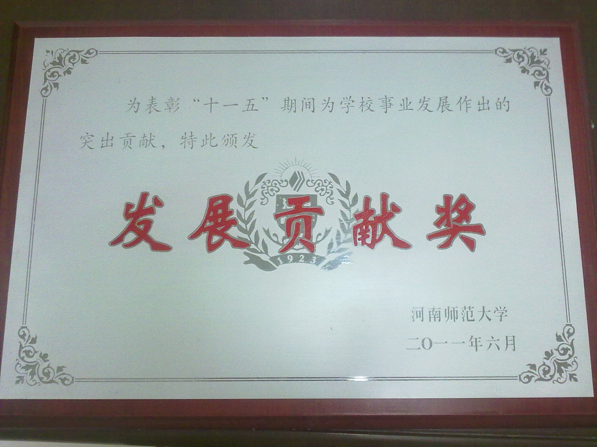 最后,王海旺副书记宣读《河南师范大学关于颁布“十一五”学院发展奖励的决定》,授予经济与管理学院发展贡献奖。