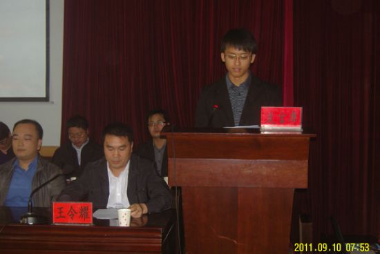 接着,往届生代表09级刘传泽同学对新生可能遇到的困惑做了详细的指点;2011级新生代表对自己的一言一行做出了细致而具体的规划,表达了勇往直前的决心和绝不退缩的勇气。