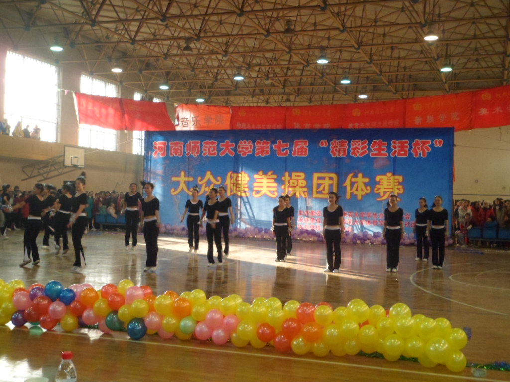 12月9日下午,河南师范大学第七届大众健美操团体赛在校园球类馆隆重举行。此次比赛由河南师范大学学生社团联合会主办,体育学院舞美协会承办。来自我院24名学生组成的代表队参与此次比赛。