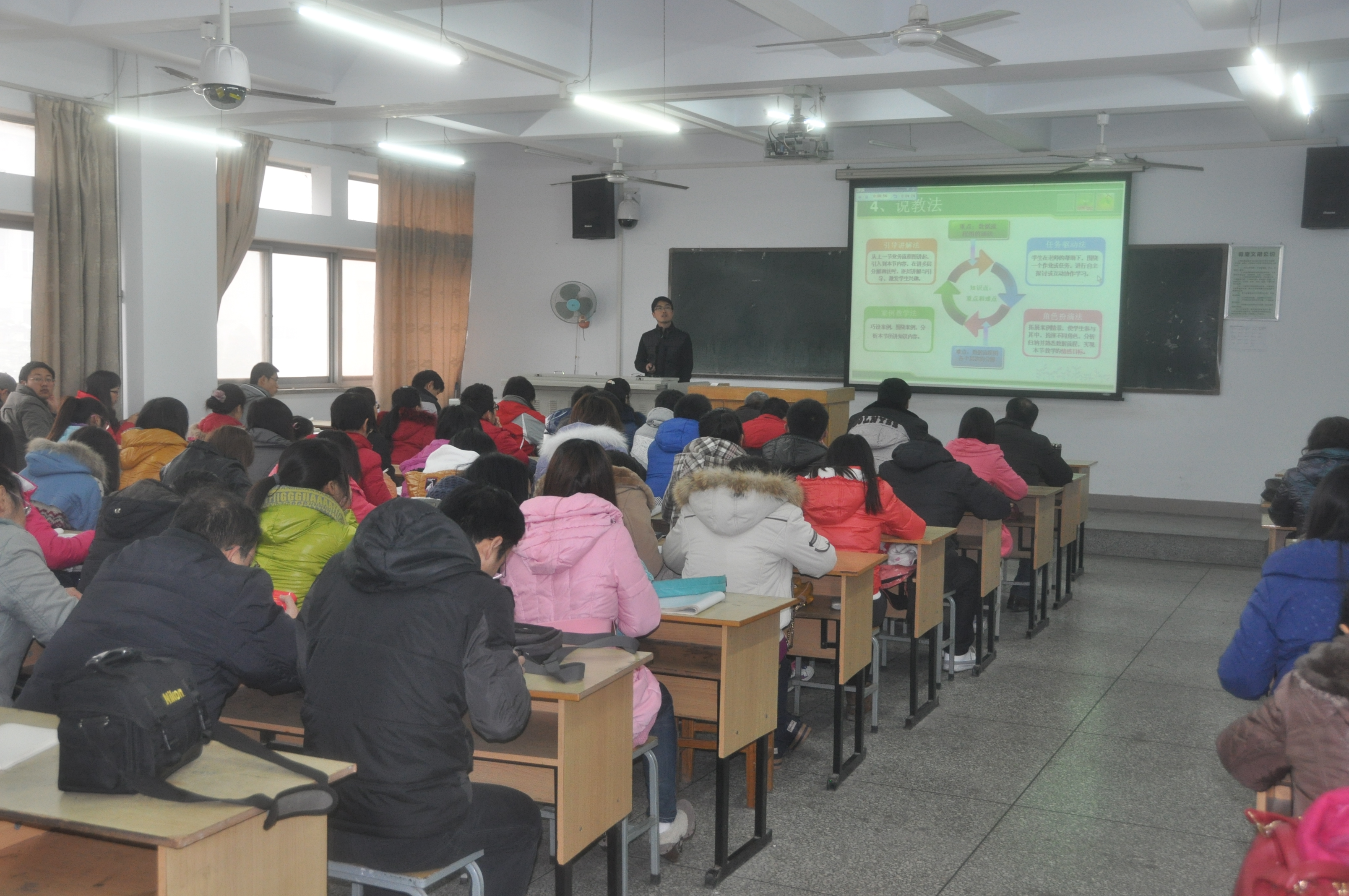 参赛教师根据学院下发的比赛要求,积极准备,踊跃报名,本次比赛共有16名青年教师参加。参赛的教师每人需准备三个参赛内容,即课件和现场说课、讲课。比赛分说课和讲课两个环节,先进行说课再进行讲课,说课和讲课应为同一内容。参赛选手通过教材分析、学情分析、教法学法、教学目标、教学流程、学习评价等方面展示自己的课堂内容。各位青年教师认真编写教案,在讲课过程中,通过生动的语言、丰富的肢体表现力,有层次、有重点的讲授专业知识,并能运用多媒体教学设备扩充了教学内容;课堂气氛活跃、授课方式具有吸引力;信息量饱满、严谨。最大的特点是结合经济管理中的案例,深入浅出的讲解基本理论,符合学生的实际需求,具有启发性。授课青年教师着装典雅、规范,教态自然大方。经过激烈角逐,由专家评委公平公正打分,最终产生了一等奖两名,二等奖三名,三等奖五名。