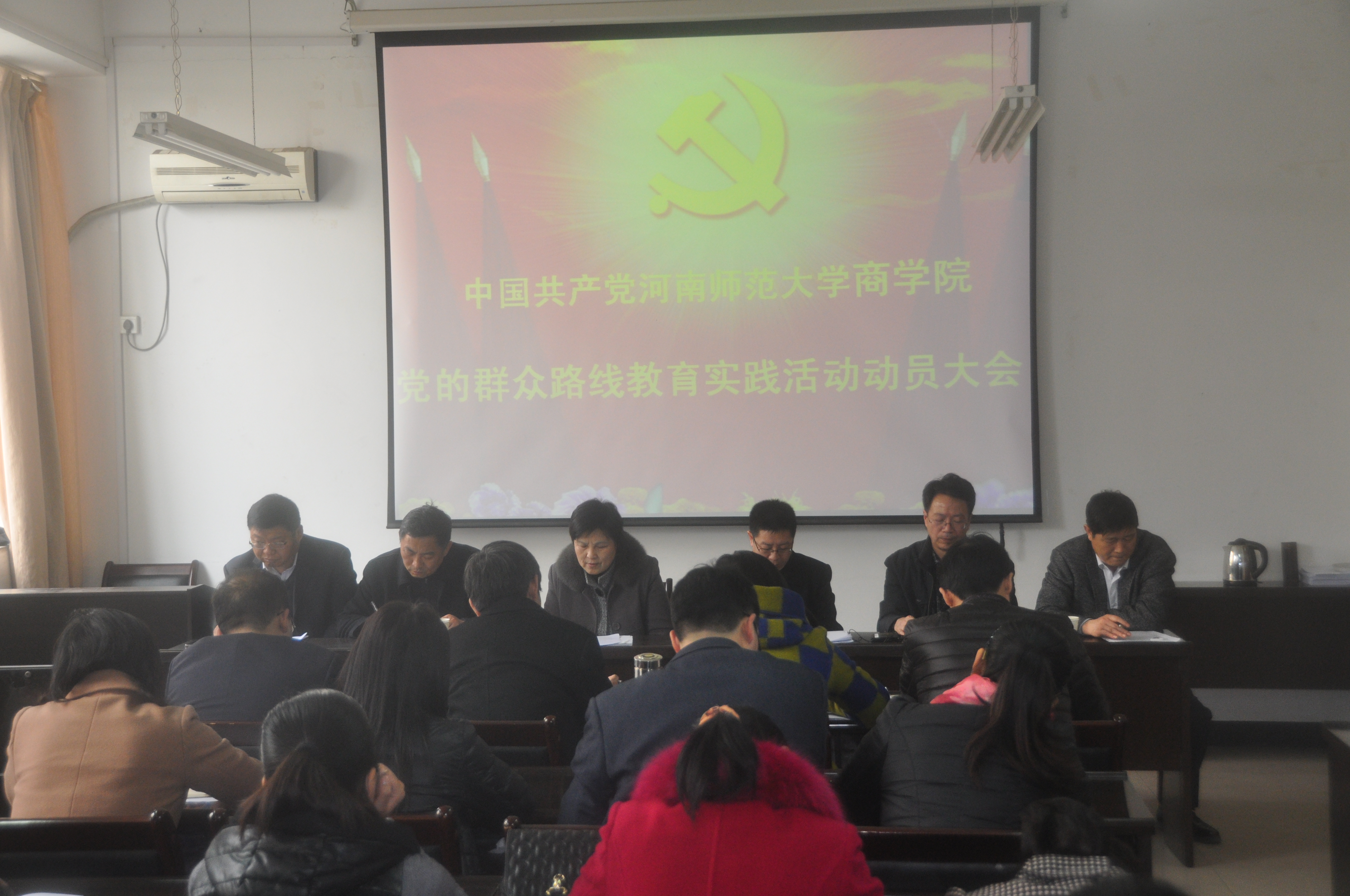 首先,学院党委委员、学院院长任太增宣读了商学院党的群众路线教育实践活动领导小组名单;院党委副书记李杰宣读了《河南师范大学商学院党的群众路线教育实践活动实施方案》。接下来,院党委书记朱建发表了激情洋溢的动员讲话。在讲话中,朱书记围绕此次群众路线教育实践活动的工作重点,结合我院实际,具体提出以下建议和要求:一、统一思想,充分认识开展群众路线教育实践活动的重要意义。实践证明,群众路线是我们党的制胜法宝,群众路线不仅是我们的思维方法更是我们的工作方法。朱书记要求大家充分认识到开展这次教育实践活动对每个党员干部的重要的意义。二、真抓实干,用教育实践活动助推学院事业发展。认真查找问题、真抓实干是我院此次教育实践活动的总要求。朱书记要求大家,认真进行系统学习,要以整风精神开展教育实践活动,进行批评与自我批评,对查摆出的问题立行立改。三、加强领导,确保教育实践活动有序有效开展。在校党委统一领导和学校活动领导小组、督导组的具体指导下,我院成立了教育实践活动领导小组,开展调查研究,指导活动的开展,务求活动的成效。