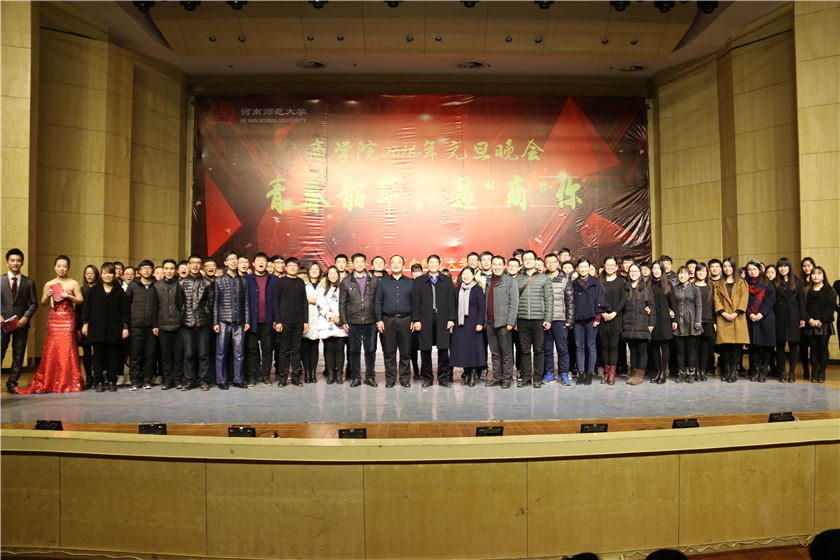 1月2日晚七点半,商学院在帕瓦罗蒂音乐厅举办了以“青春韶华,遇‘商’你”为主题的元旦晚会。我校离退休职工管理处党委书记王淑婷,档案馆馆长赵启才,商学院院长任太增、党委副书记李杰、副院长刘新同、乔俊峰,校离退休职工管理处离休科科长范丽霞,我院团委书记兼2012级辅导员王令耀等领导老师以及特邀嘉宾新乡市邮政储蓄银行学院路支行行长郎军霞以及职业经理人李婷莅临晚会现场,与全校五百多名学生共同观看了此次晚会。