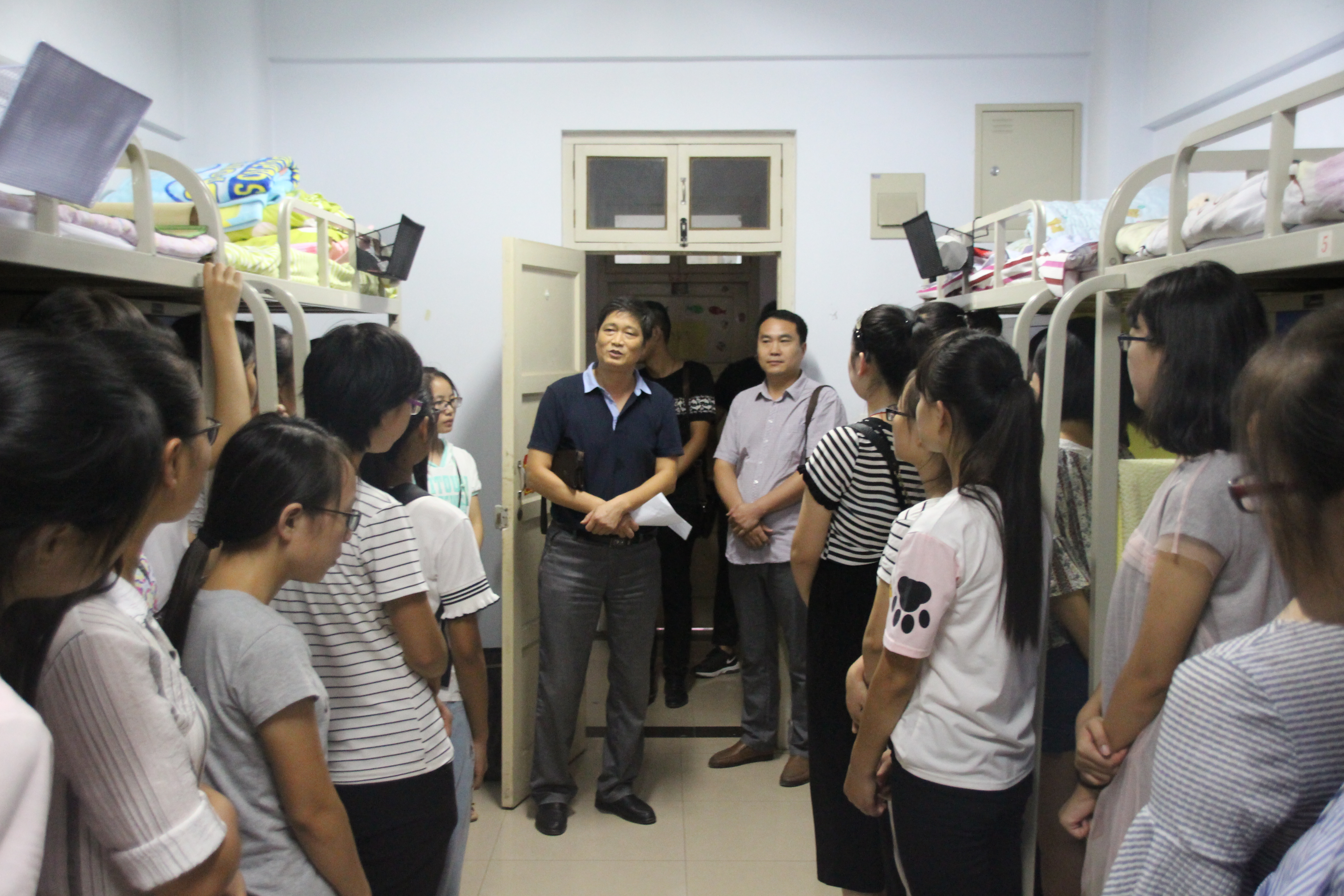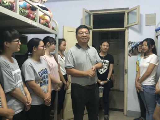 为了进一步做好新生入学教育工作,加快新生适应大学生活,9月11日晚七点,我院党委书记李杰、院长任太增等学院领导老师前往新生宿舍,探望慰问2016级新生,代表院全体教职工向新生们表示欢迎。