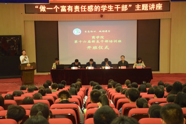 为了加强新生学生干部对学生工作的认识,10月14日晚7点,商学院在东教C二楼思教平台报告厅隆重举行了新生干部培训开班仪式。院党委副书记段红伟、团委书记兼2015级辅导员王岩、2013级辅导员李建华、2014级辅导员张安琪、2016级辅导员高岩锋以及我院全体学生干部出席了此次大会。